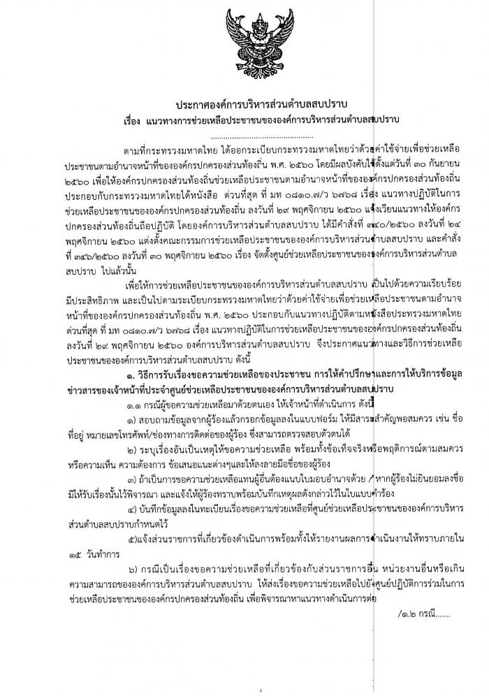 ประกาศแนวทางการช่วยเหลือประชาชน อบต.สบปราบ