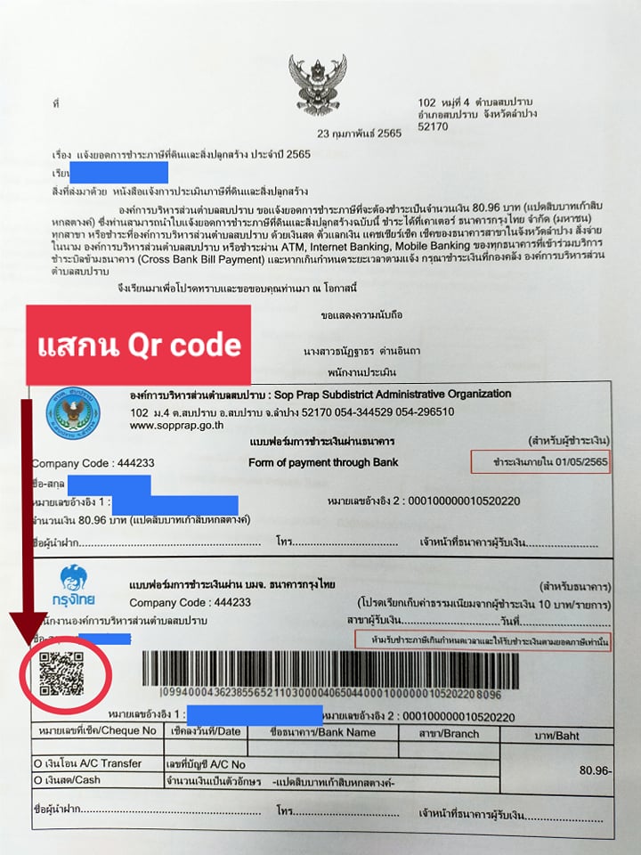 การให้บริการการชำระภาษีที่ดินและสิ่งปลูกสร้างโดยแสกน Qr Code