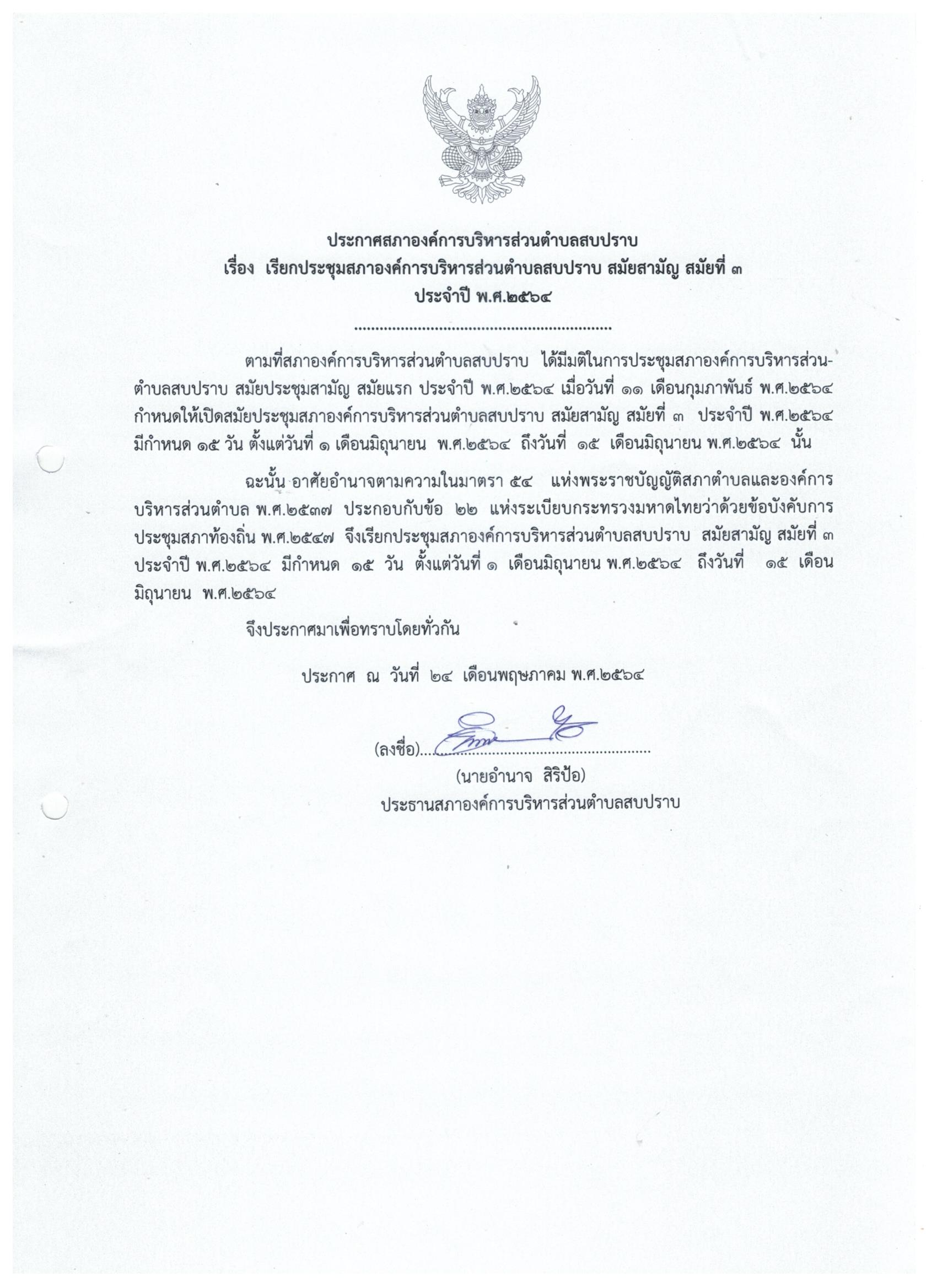 ประกาศเรียกประชุมสภาสมัยสามัญ สมัยที่ 3 ประจำปี 2564