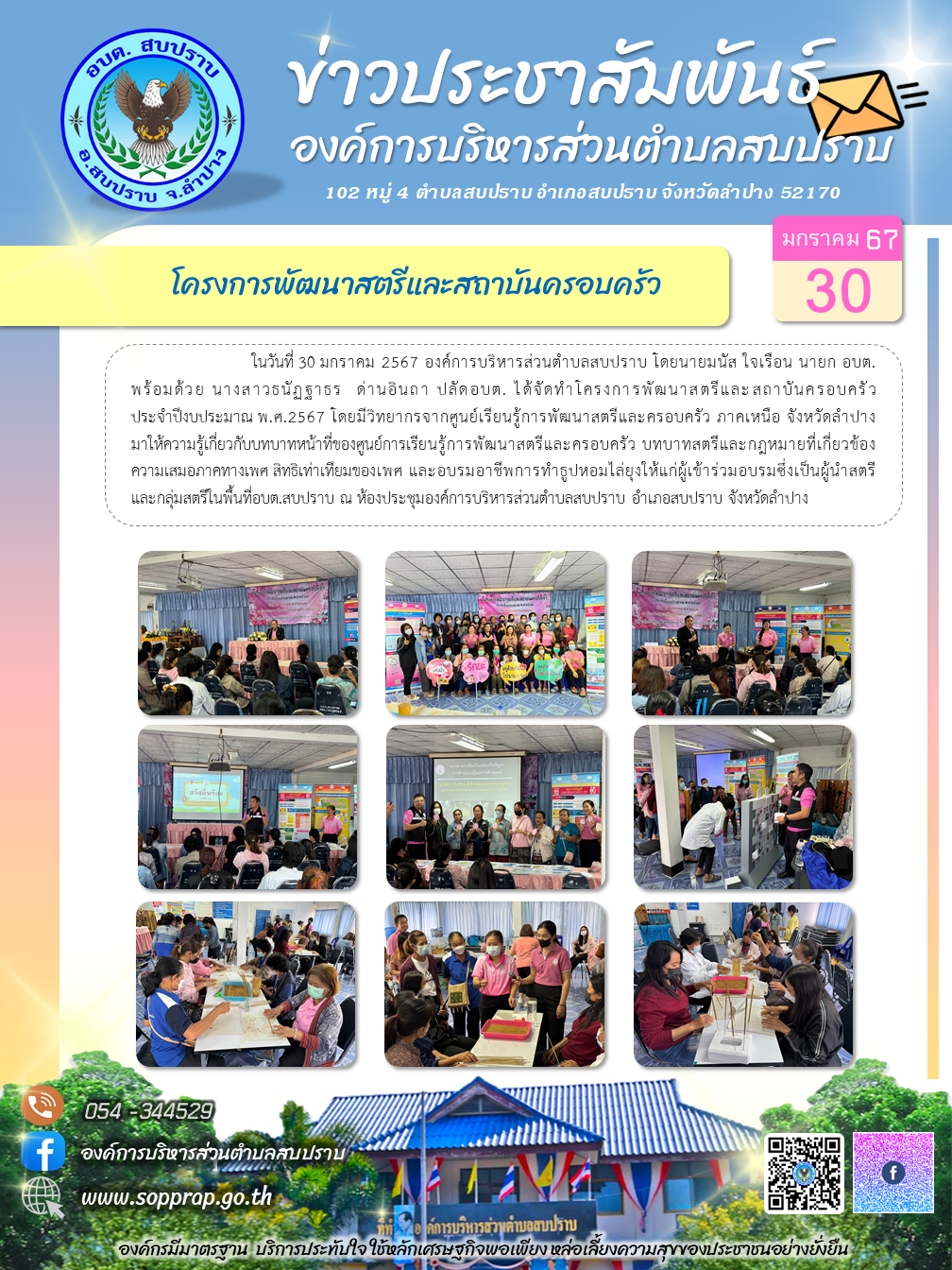 จดหมายข่าว กิจกรรมโครงการพัฒนาสตรีและสถาบันครอบครัว ประจำปีงบประมาณ พ.ศ.2567
