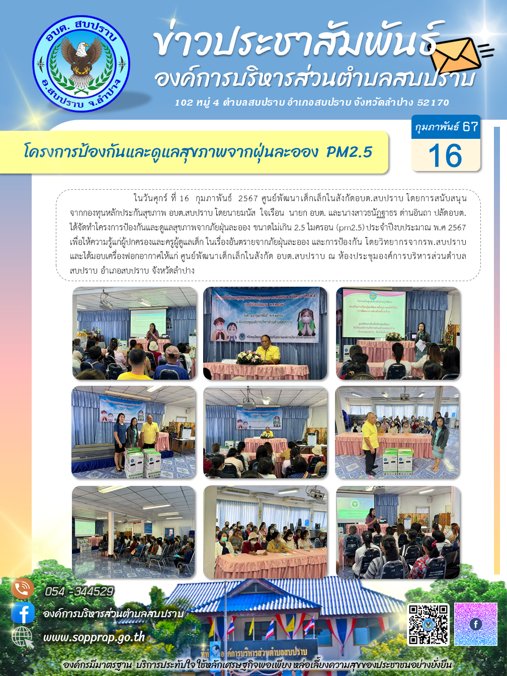 ประชาสัมพันธ์โครงการป้องกันและดูแลสุขภาพจากฝุ่นละออง pm.2.5
