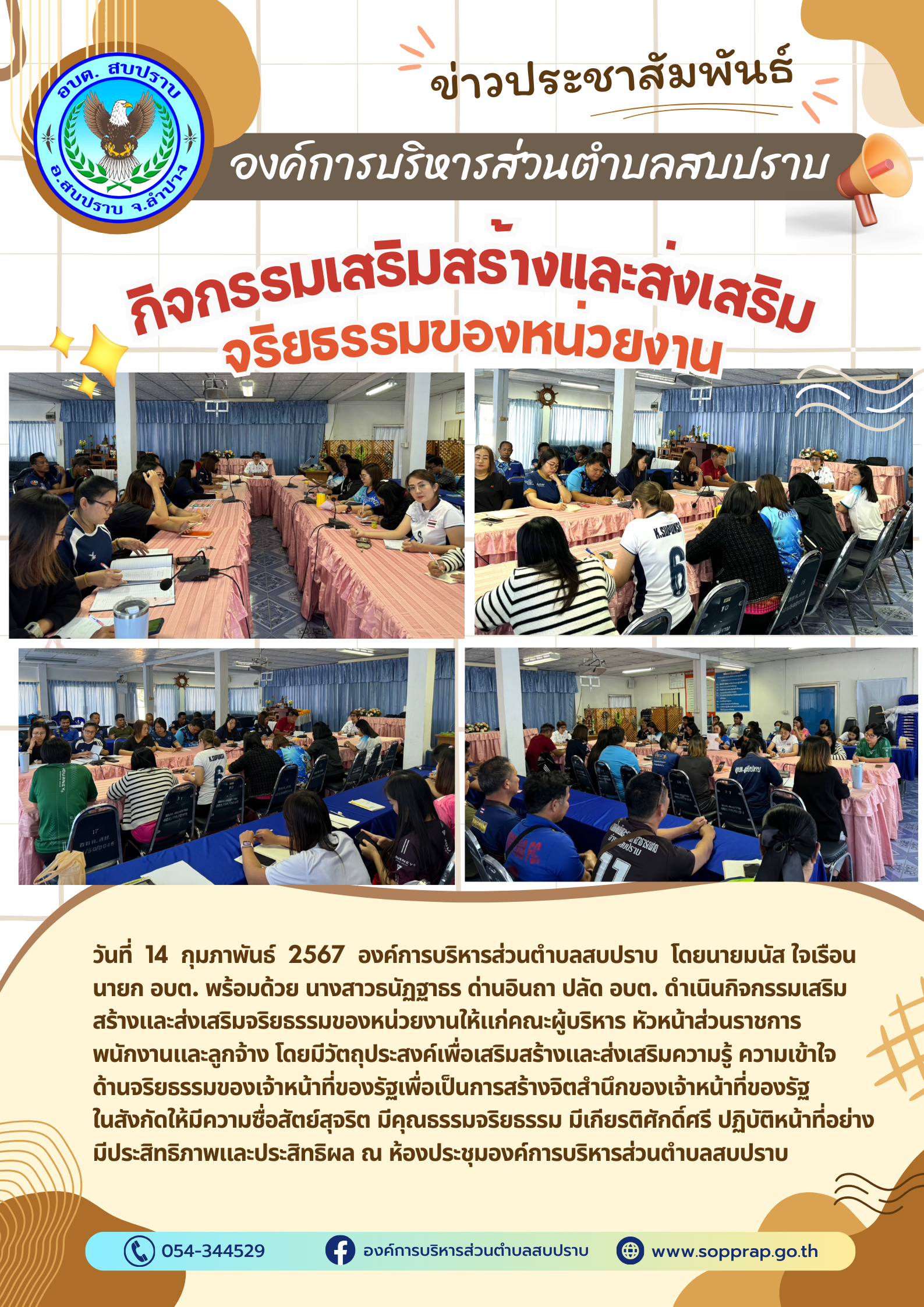 ประชาสัมพันธ์ กิจกรรมเสริมสร้างและส่งเสริมจริยธรรมของหน่วยงาน