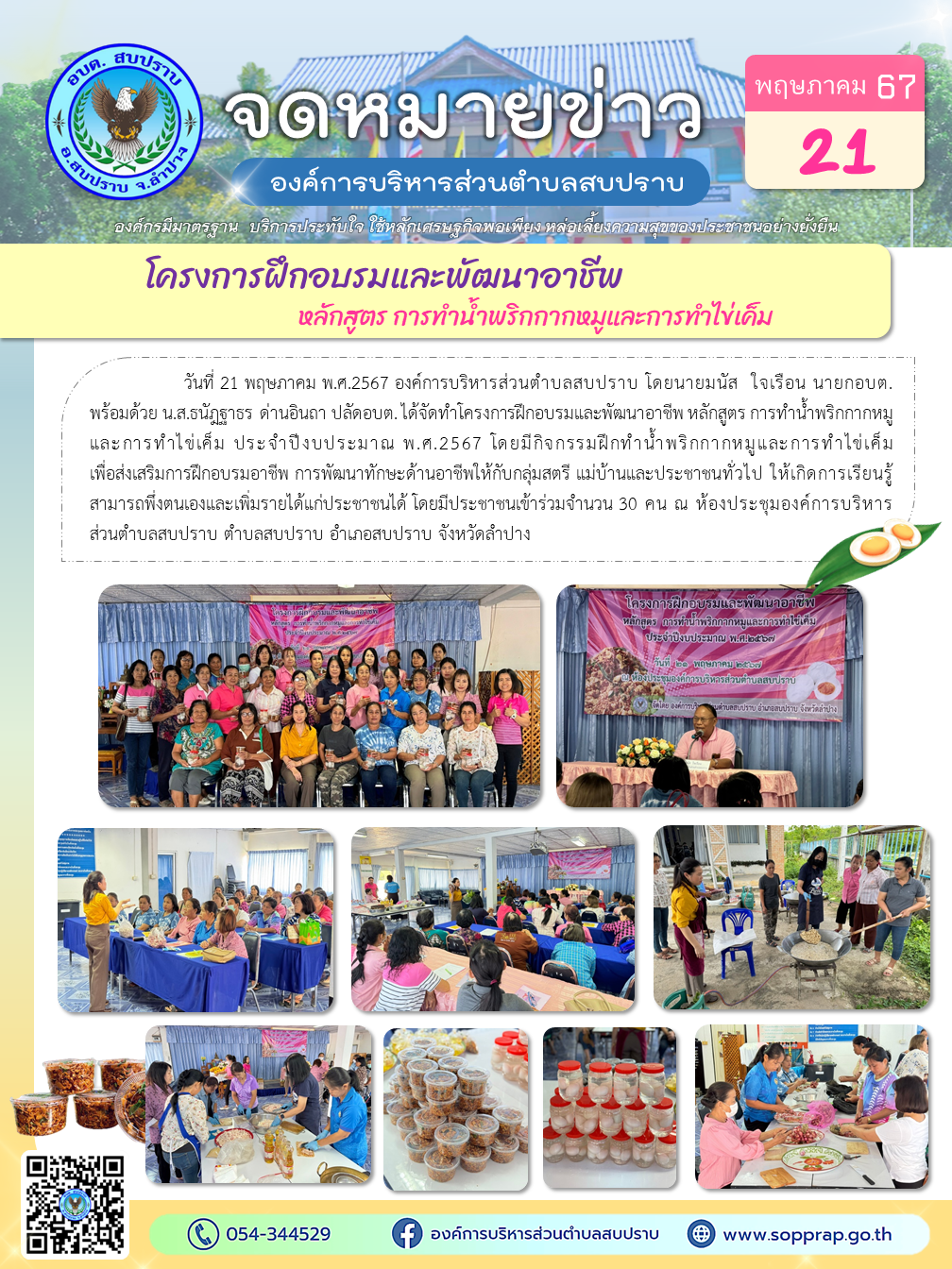 โครงการฝึกอบรมและพัฒนาอาชีพ หลักสูตร การทำน้ำพริกกากหมูและการทำไข่เค็ม ประจำปีงบประมาณ พ.ศ.2567