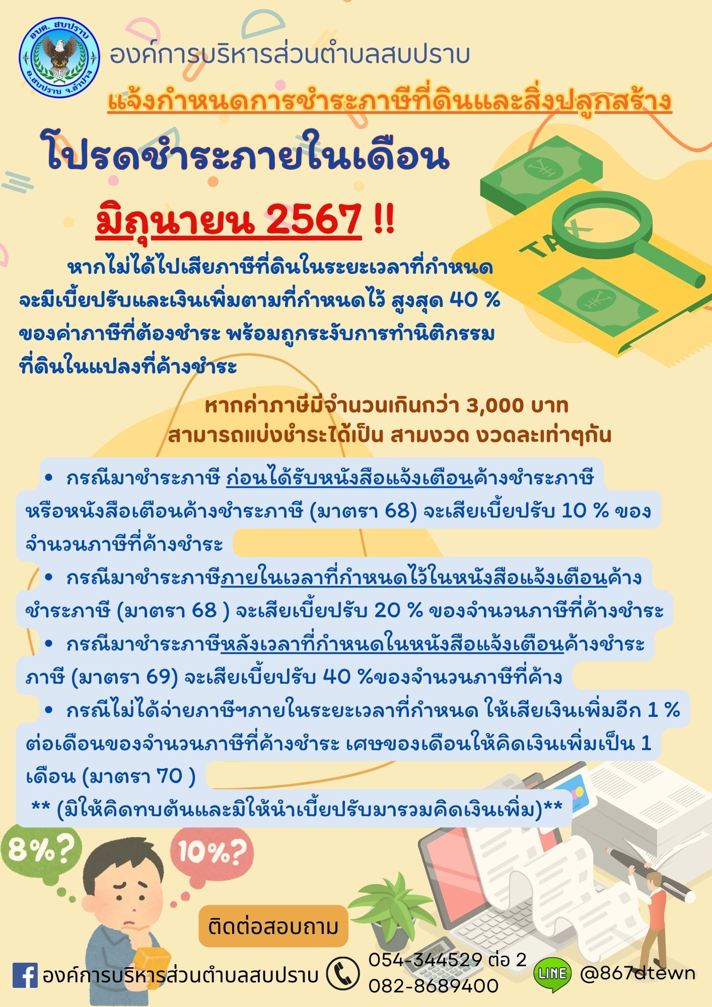 ⛔️กำหนดการชำระภาษีภายในเดือนมิถุนายน 2567⛔️ เกินกำหนดระยะเวลามีเบี้ยปรับและเงินเพิ่มนะคะ‼️????
