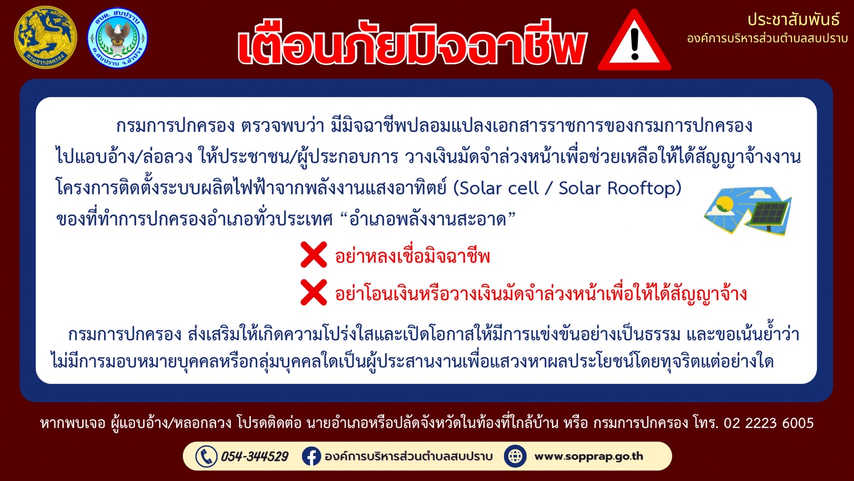 ประชาสัมพันธ์เตือนภัยมิจฉาชีพ