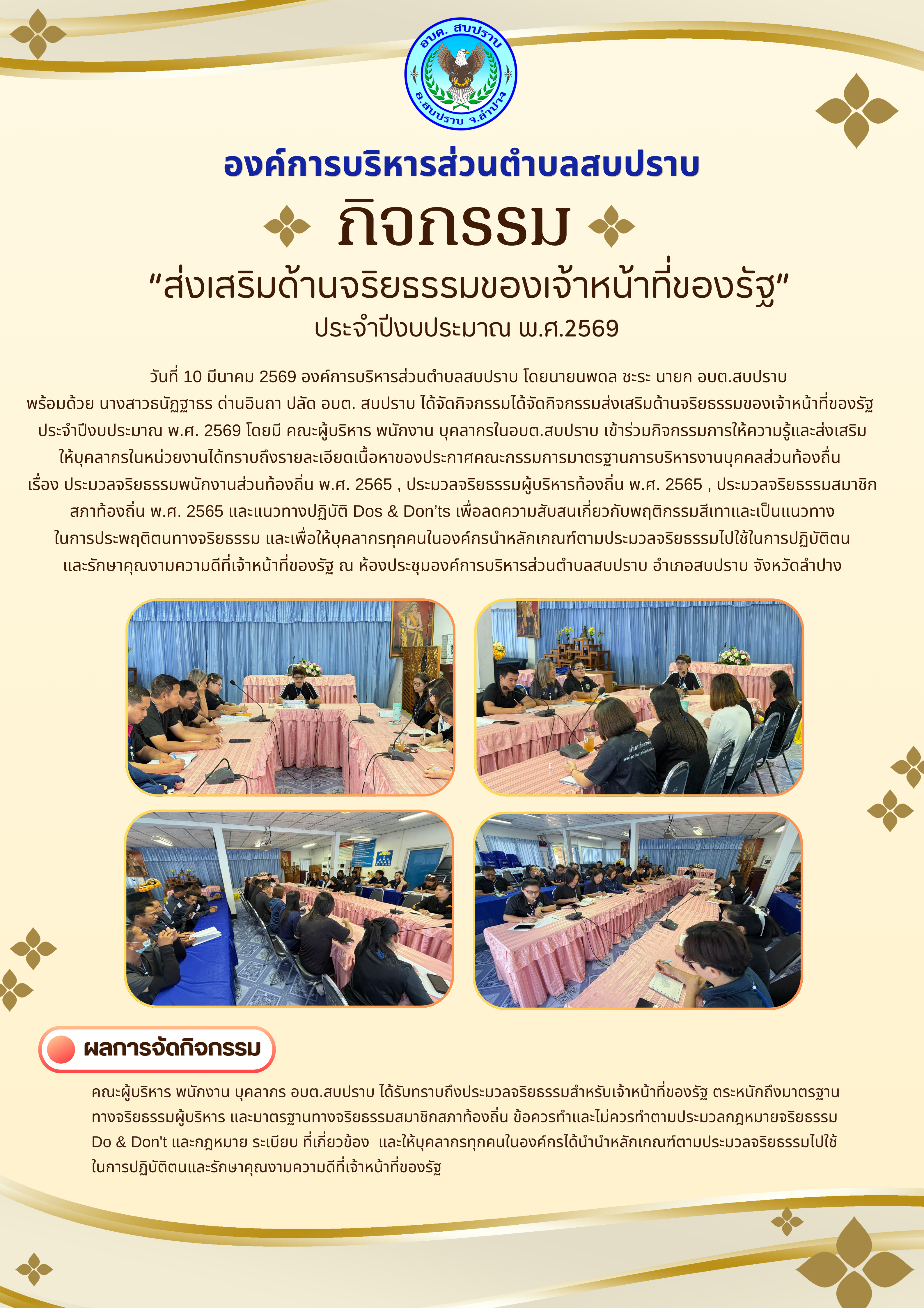 กิจกรรมส่งเสริมด้านจริยธรรม ของเจ้าหน้าที่ของรัฐ ประจำปีงบประมาณ พ.ศ. 2569