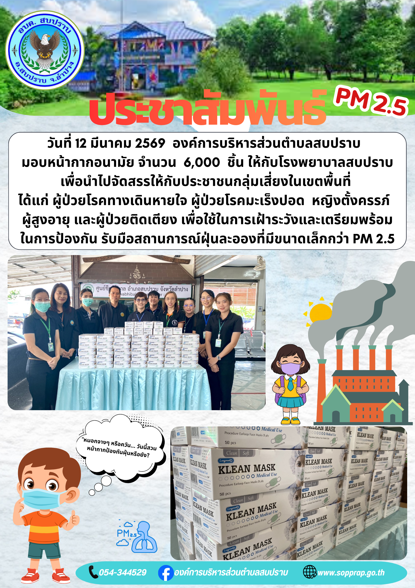 จดหมายข่าว ประชาสัมพันธ์ อบต.สบปราบ มอบหน้ากากอนามัยให้กับโรงพยาบาลสบปราบ