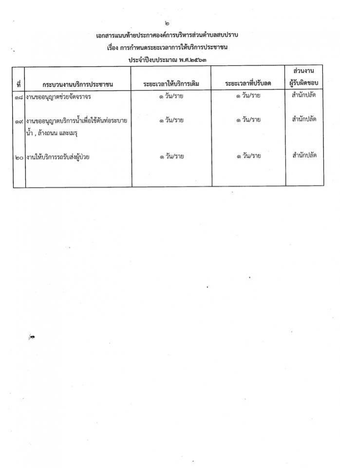 เรื่อง การกำหนดระยะเวลาการให้บริการประชาชน ประจำปีงบประมาณ พ.ศ.2563